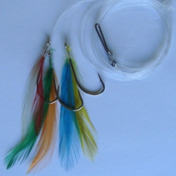 Coloured feather mackerel trace. Available in 3 and 6 hooks. Available in either Red or Black.