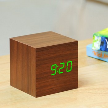 This Cube Walnut alarm Click Clock can tell you the time, date and temperature.